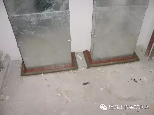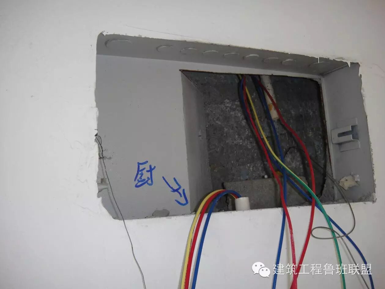 5、暗装于结构墙体部位的箱盒,缩进饰面20mm以上的箱盒必须加套盒处理;暗装于木结构等易燃装饰面内的箱盒,箱盒口必须与装饰面平齐。