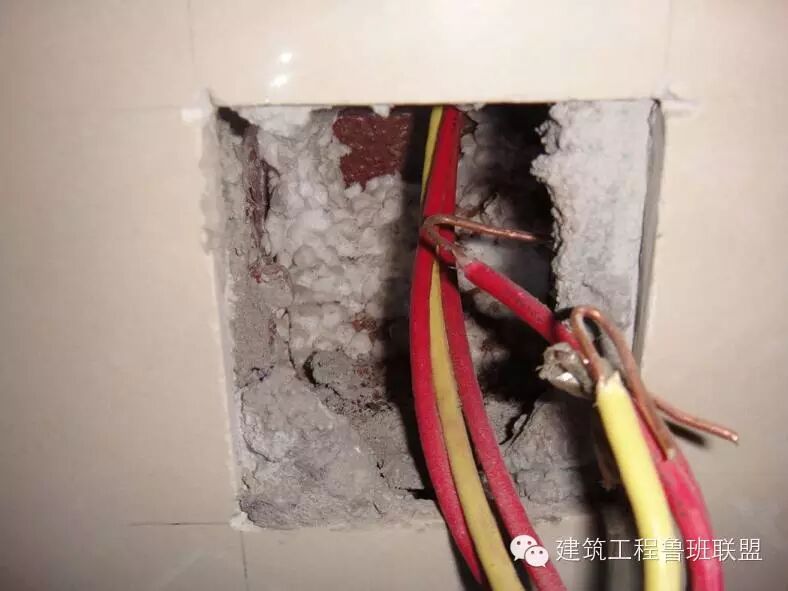装饰面内线盒进墙过深未加装套盒,未清理收口即穿线施工