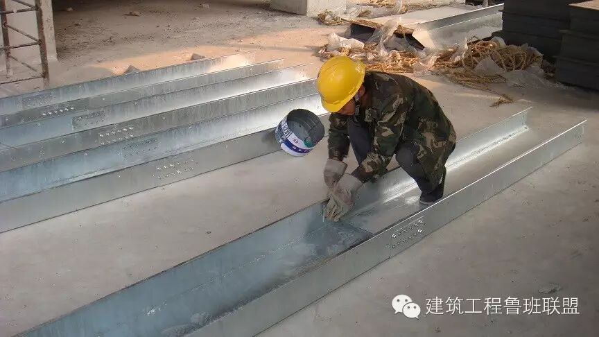 固定在墙体或顶板上的垫板可只在贴近墙体侧刷防锈漆及面漆,外侧(立柱接触面)待焊接完毕后进行刷油。
