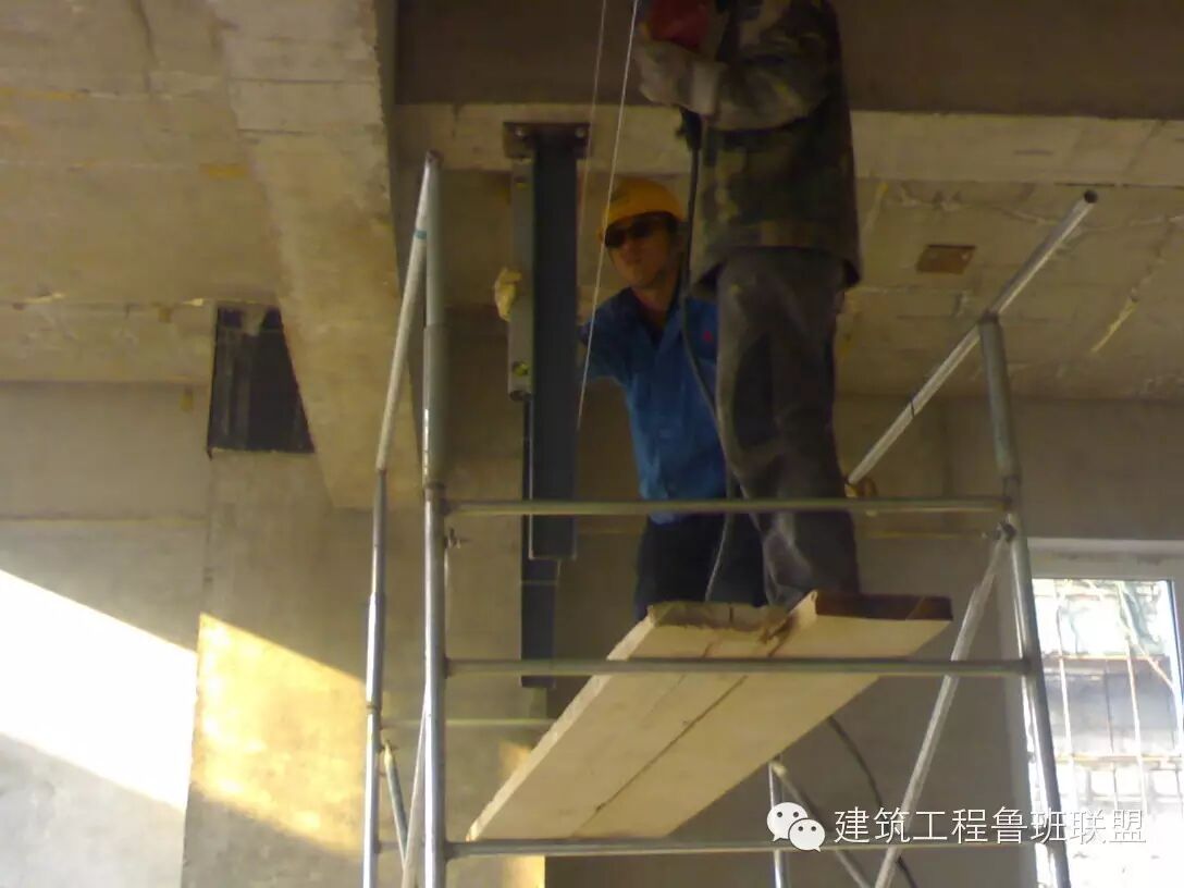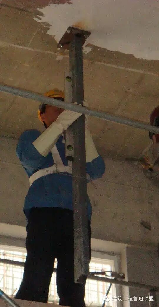 1、立柱焊接在垫板上。焊接前要根据土建所给标高确定安装高度及立柱长度。