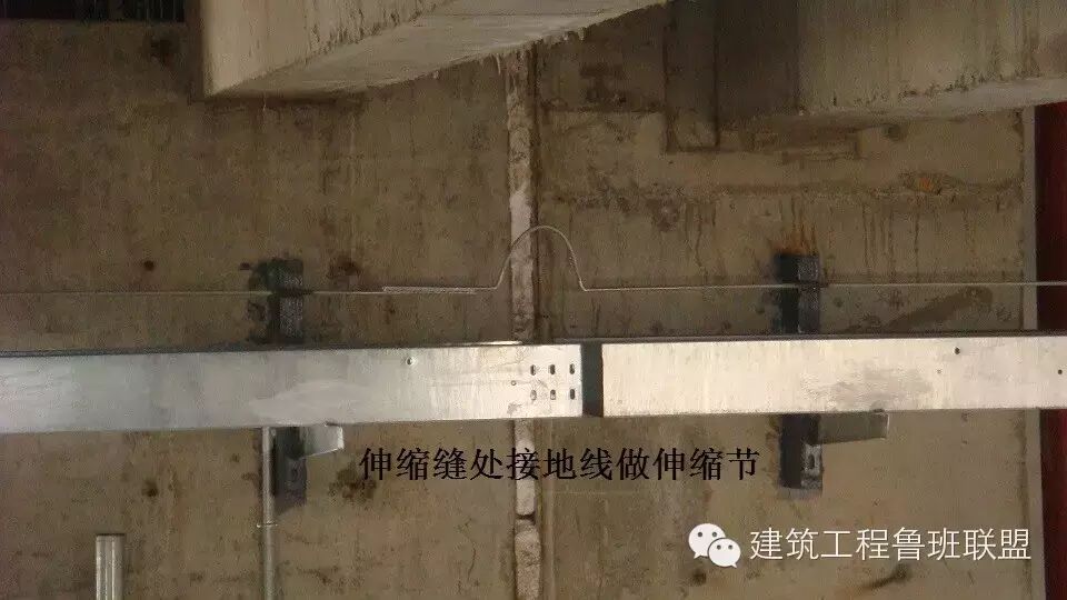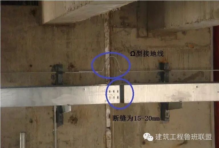 4、直线段金属电缆桥架长度超过30m,玻璃钢制电缆桥架长度超过15m时应设有伸缩节,电缆桥接跨越建筑物变形缝处应断开(断缝15-20mm),同时跨接地线做成Ω型。