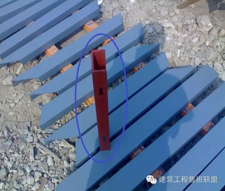 4、立柱切割完后除锈并进行防锈防腐处理,刷两道铁红色防锈漆。