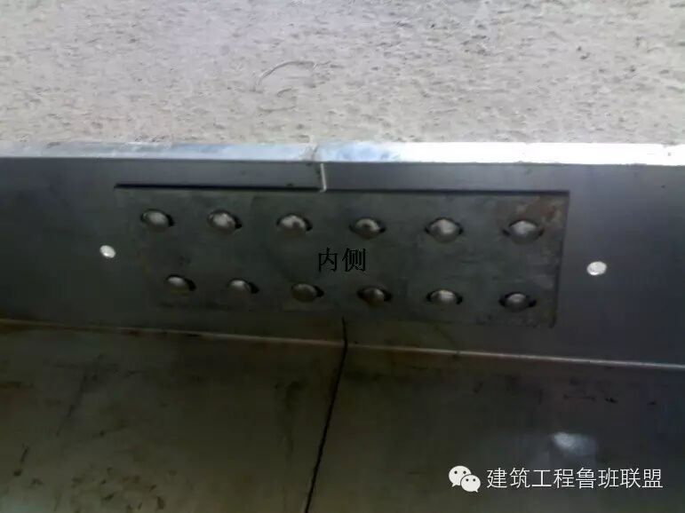 7、立柱与垫板焊接时,要对立柱的内外两侧施焊,焊缝均匀饱满。焊接时一般外侧满焊,内侧分段焊接,槽钢拐角处,两侧各留10mm不焊接。