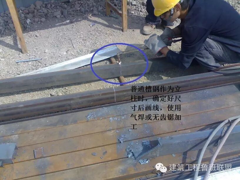 3、镀锌槽钢采用无齿锯切割,严禁使用电气焊切割。