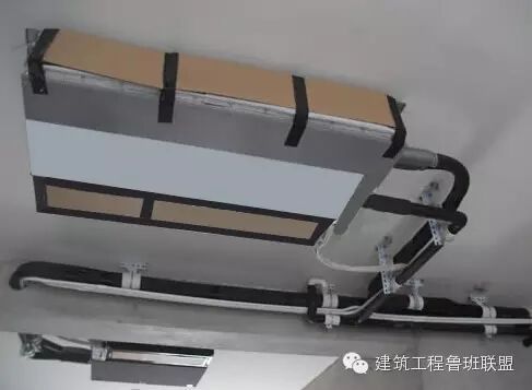 ①吊装中央空调室内机,并对内机进行包裹,避免有灰尘杂质进入;