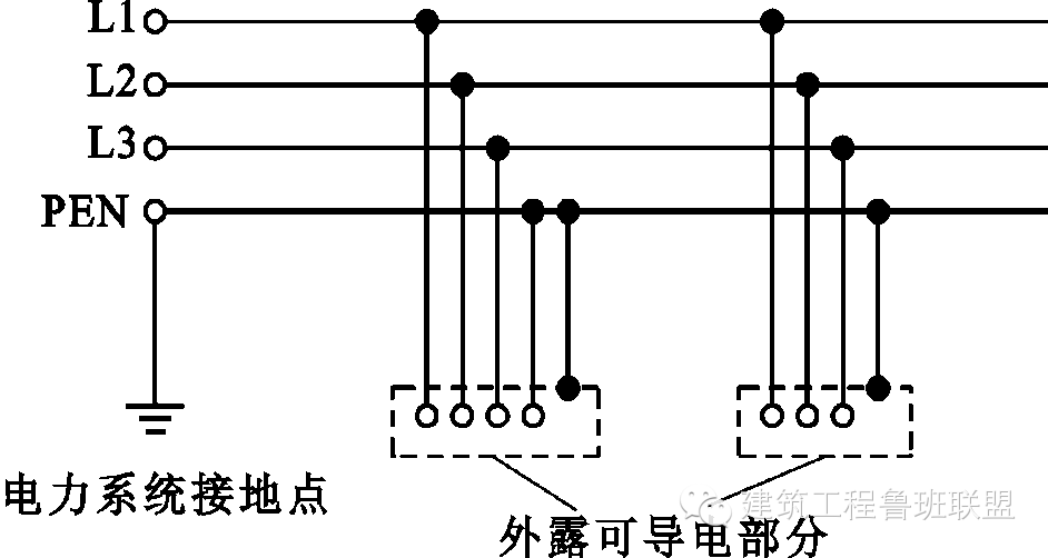 民用建筑常用的接地系统为TN系统,分为TN-S 、TN-C、TN-C-S三种形式。